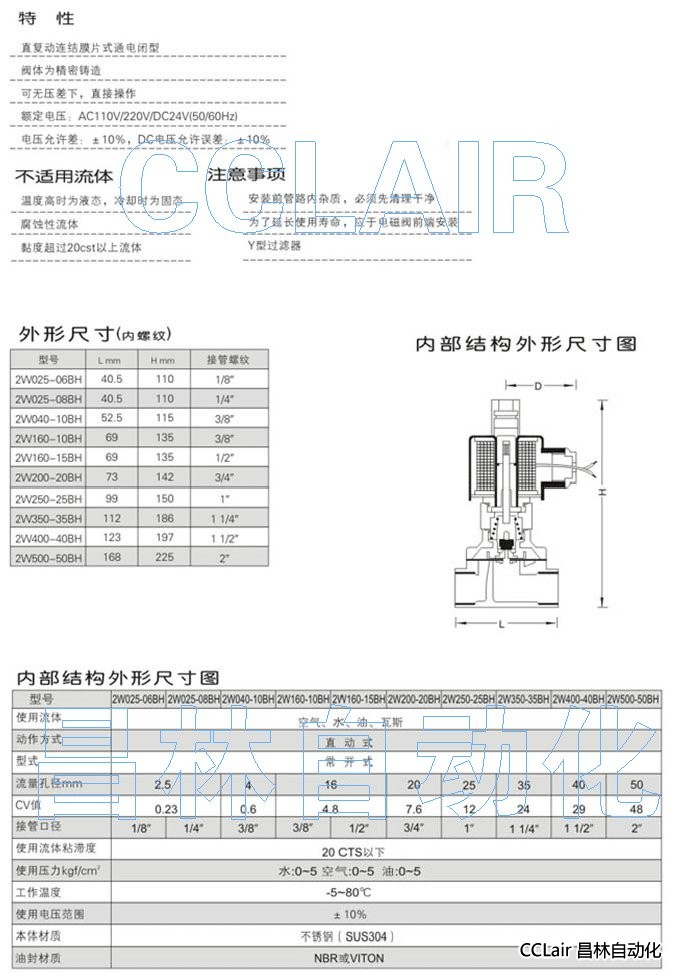 詳細(xì)信息 2W025-06BH,2W025-08BH,2W040-10BH,2W160-10BH,不銹鋼二位二通直動(dòng)式電磁閥(常開型)