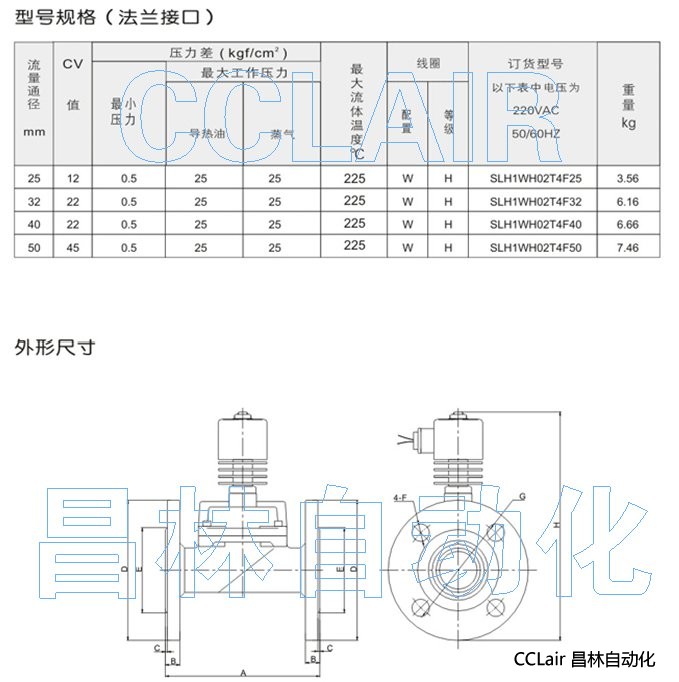 SLH1WH02T4F25,SLH1WH02T4F32,二位二通型高溫不銹鋼法蘭電磁閥(常閉型)