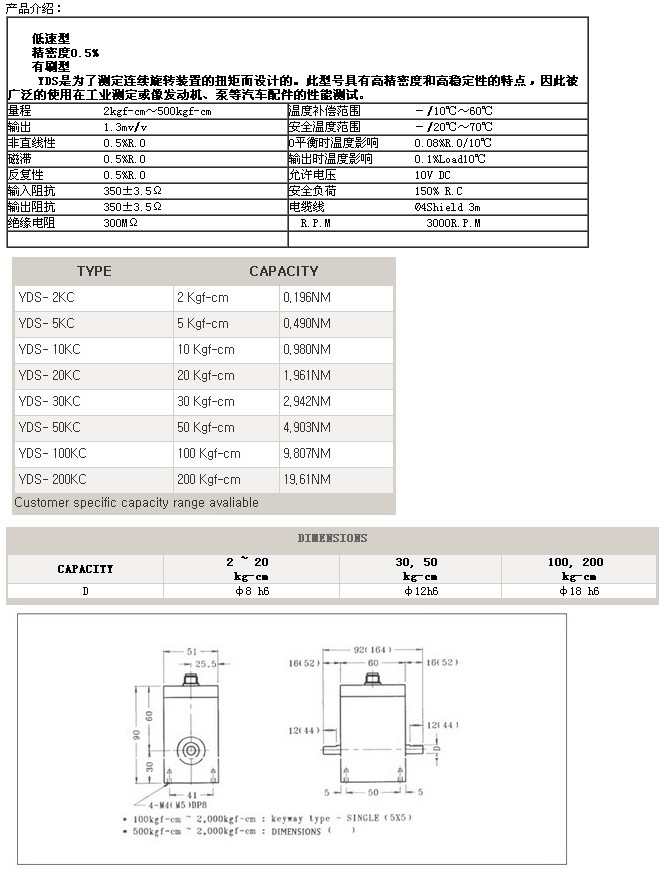詳細信息 YDS-2KC,YDS-5KC,YDS-10KC,YDS-20KC,YDS-30KC,YDS-50KC,setech扭矩傳感器