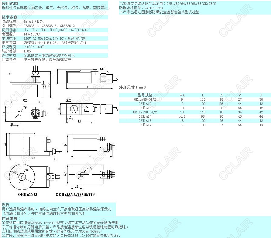 OKⅡm9B-G1/2,OKⅡm12,OKⅡm13,OKⅡm13B-G1/2,OKⅡm14,OKⅡm16,OKⅡm17,防爆電磁線圈 詳細信息 OKⅡm9B-G1/2,OKⅡm12,OKⅡm13,OKⅡm13B-G1/2,OKⅡm14,OKⅡm16,OKⅡm17,防爆電磁線圈
