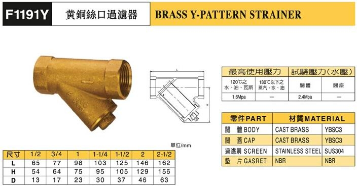 1191Y黃銅絲口過(guò)濾器尺寸: