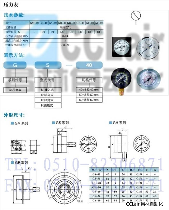GM-10,GS-40,GH-40,GH-50, 壓力表