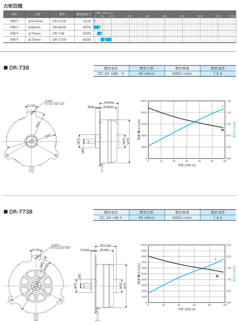 DR-5236,DR-6638,DR-738,DR-7738,內(nèi)轉(zhuǎn)子直流無(wú)刷馬達(dá)