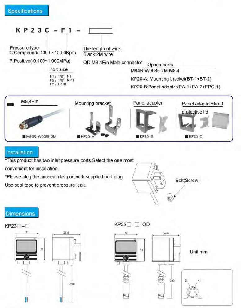 KP23C-F1,KP23P-F1,KP23C-F2,KP23P-F2,KP23C-F3,KP23P-F3,Shinya壓力開(kāi)關(guān)