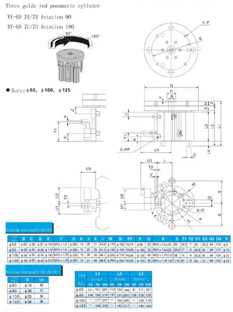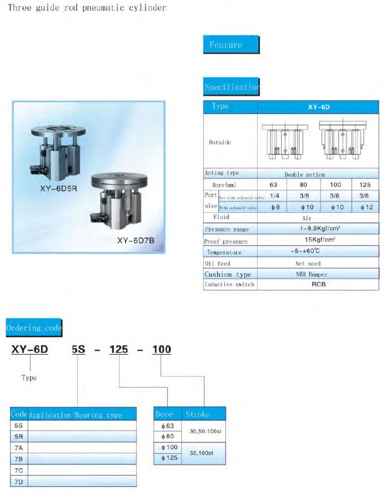 XY-6D5S-63,XY-6D5R-80,XY-6D7A-100,XY-6D7B-125,XY-6D7C-63,XY-6D7D-80,Shinya三導(dǎo)桿氣缸