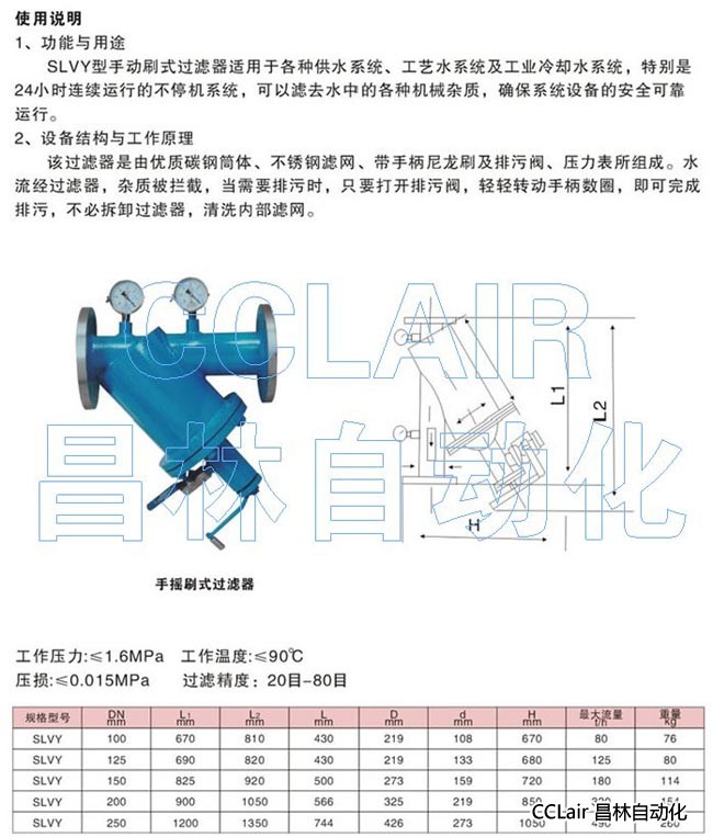 詳細(xì)信息 SLVY,手搖刷式過濾器