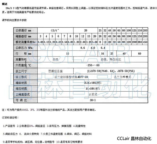 詳細(xì)信息 ZMAP-D,ZMBP-D,氣動薄膜低溫調(diào)節(jié)閥
