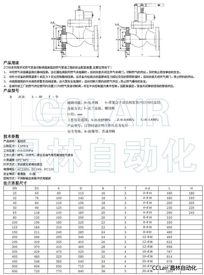 詳細信息 ZCRA-65,ZCRA-80,ZCRA-100,ZCRA-125,ZCRA-150,常開式燃氣緊急切斷閥