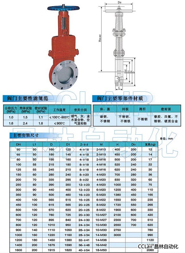 DPZ73YF-1.0/16-DN50-1600,手動刀型閘閥(帶蓋)