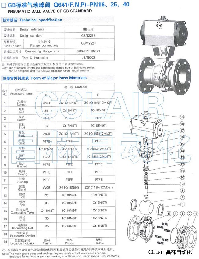 詳細(xì)信息 Q641F-16,Q641F-25,Q641F-40,標(biāo)準(zhǔn)氣動球閥