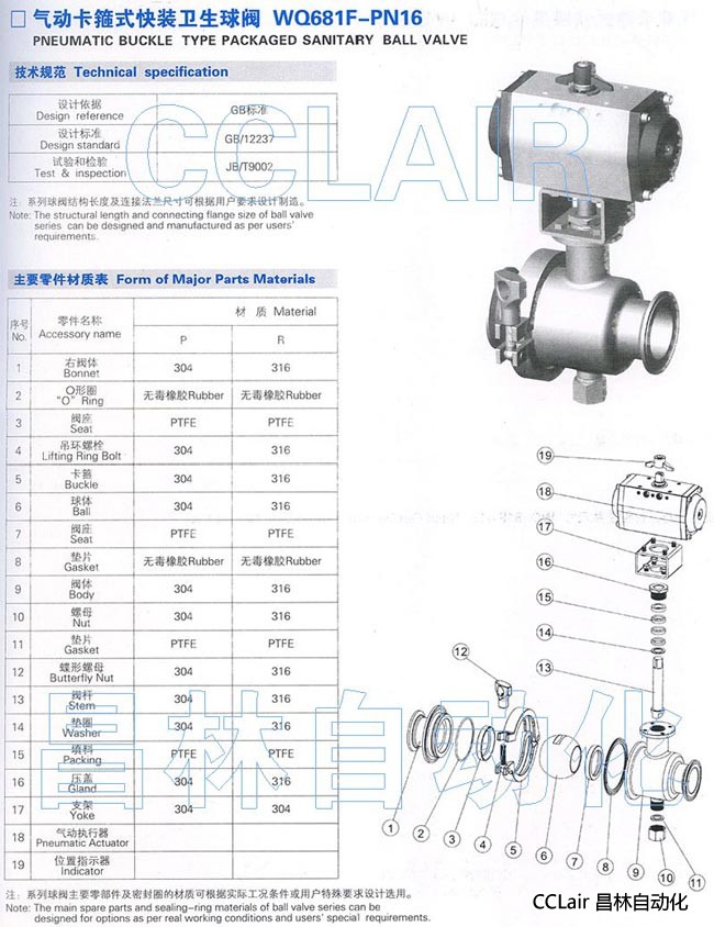 詳細信息 WQ681F-PN16,氣動卡箍式快裝衛(wèi)生球閥