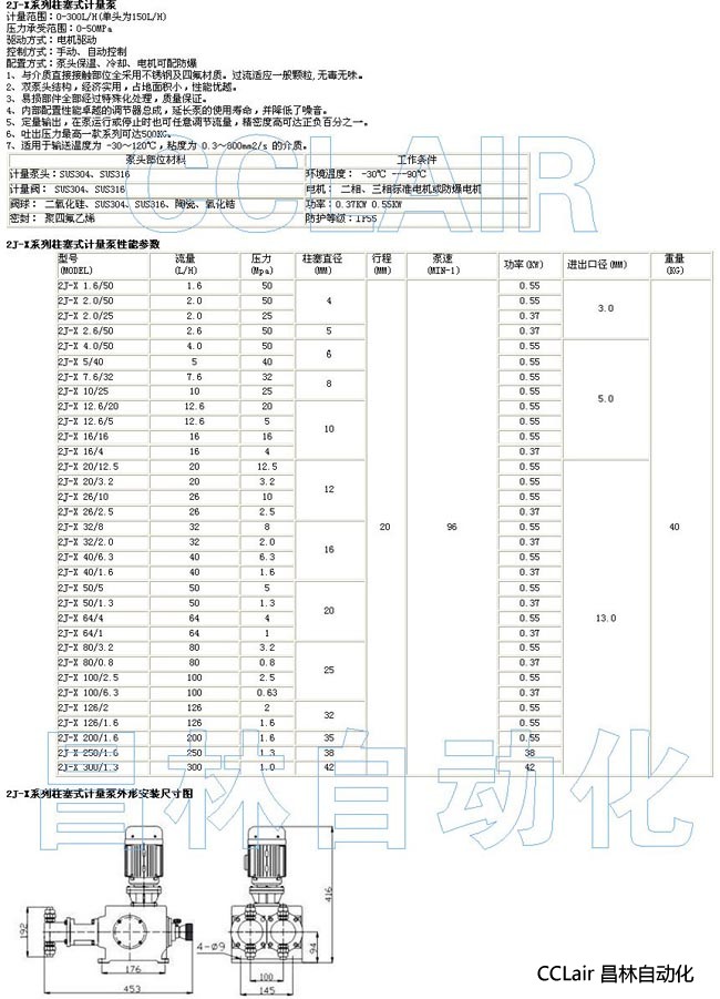 2J-X 26/2.5,2J-X 32/8,2J-X 32/2.0,柱塞式計量泵
