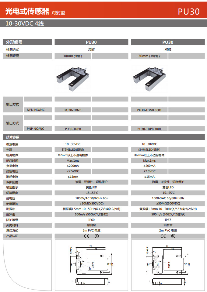 PU30-TDNB,PU30-TDPB,PU30-TDNB 3001,PU30-TDPB 3001,光電式傳感器