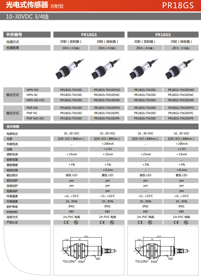 詳細信息 PR18GS-TM10D,PR18GS-TM20D,PR18GS-TM10DNO,PR18GS-TM10DNC,PR18GS-TM10DNR,PR18GS-TM10DPO,光電式傳感器