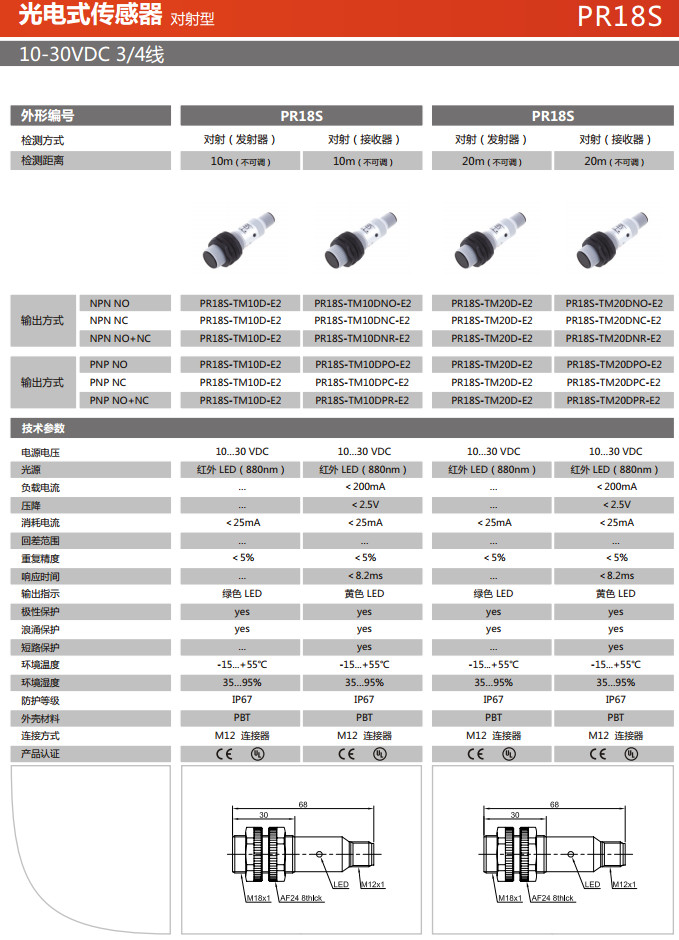 詳細信息 PR18S-TM10D-E2,PR18S-TM20D-E2,PR18S-TM10DNO-E2,PR18S-TM10DNC-E2,PR18S-TM10DNR-E2,PR18S-TM10DPO-E2,光電式傳感器