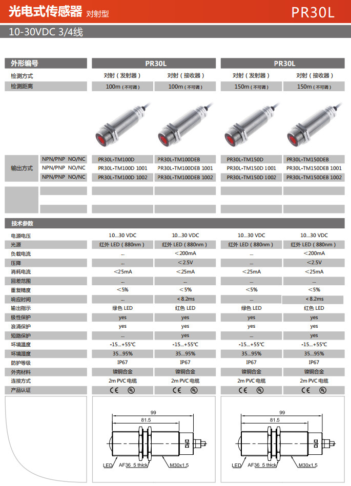 詳細(xì)信息 PR30L-TM100D,PR30L-TM100DEB,PR30L-TM150D,PR30L-TM150DEB,光電式傳感器