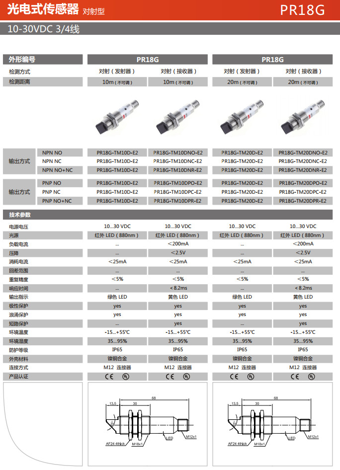 詳細(xì)信息 PR18G-TM10D-E2,PR18G-TM10DNO-E2,PR18G-TM10DNC-E2,PR18G-TM10DNR-E2,PR18G-TM10DPO-E2,光電式傳感器