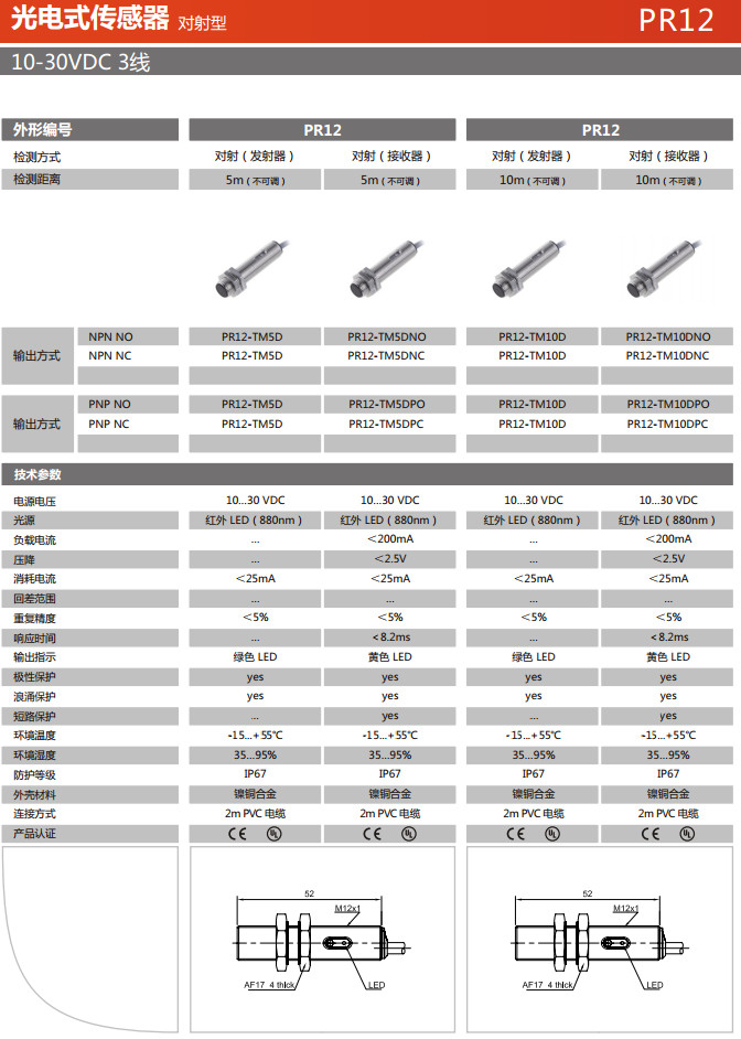 PR12-TM5D,PR12-TM5DNO,PR12-TM5DNC,PR12-TM5DPO,PR12-TM5DPC,PR12-TM10D,PR12-TM10DNO,光電式傳感器
