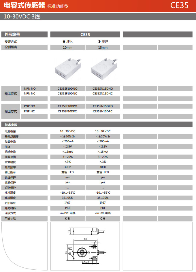 CE35SF10DNO,CE35SF10DNC,CE35SF10DPO,CE35SF10DPC,CE35SN15DNO,CE35SN15DNC,CE35SN15DPO,CE35SN15DPC,電容式傳