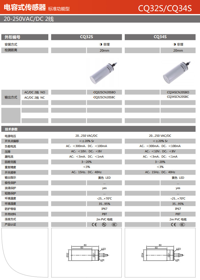 詳細(xì)信息 CQ32SCN20SBO,CQ32SCN20SBC,CQ34SCN20SBO,CQ34SCN20SBC,電容式傳感器