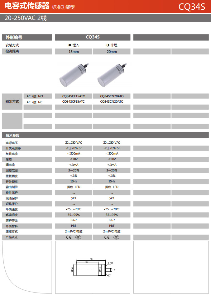 詳細(xì)信息 CQ34SCF15ATO,CQ34SCF15ATC,CQ34SCN20ATO,CQ34SCN20ATC,電容式傳感器
