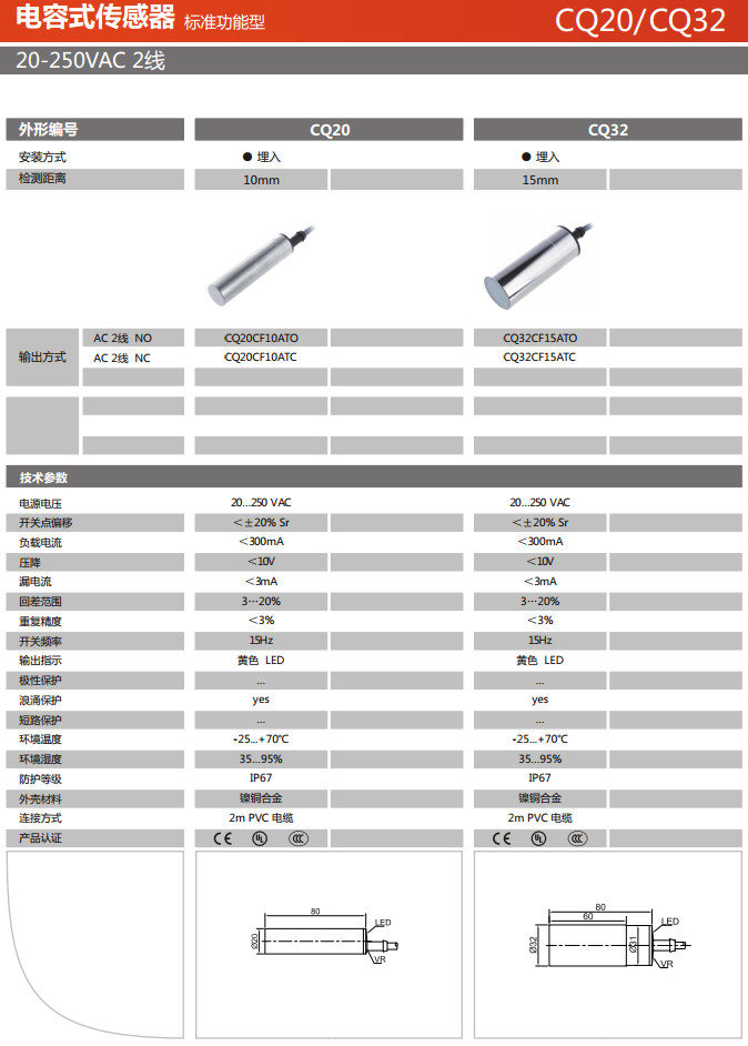 詳細(xì)信息 CQ20CF10ATO,CQ20CF10ATC,CQ32CF15ATO,CQ32CF15ATC,電容式傳感器