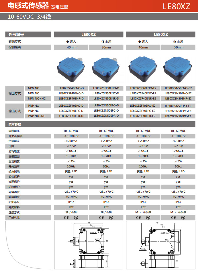 LE80XZSF40ENO-D,LE80XZSF40ENC-D,LE80XZSF40ENR-D,LE80XZSN50ENO-D,LE80XZSN50ENC-D,電感式傳感器