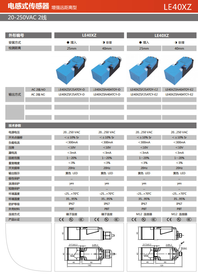 詳細(xì)信息 LE40XZSF25ATOY-D,LE40XZSF25ATCY-D,LE40XZSN40ATOY-D,LE40XZSN40ATCY-D,電感式傳感器