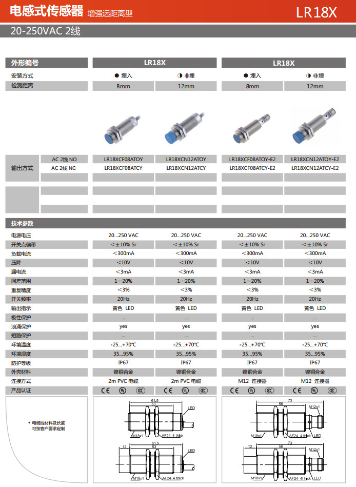 詳細(xì)信息 LR18XCF08ATOY,LR18XCF08ATCY,LR18XCN12ATOY,LR18XCN12ATCY,LR18XCF08ATOY-E2,電感式傳感器