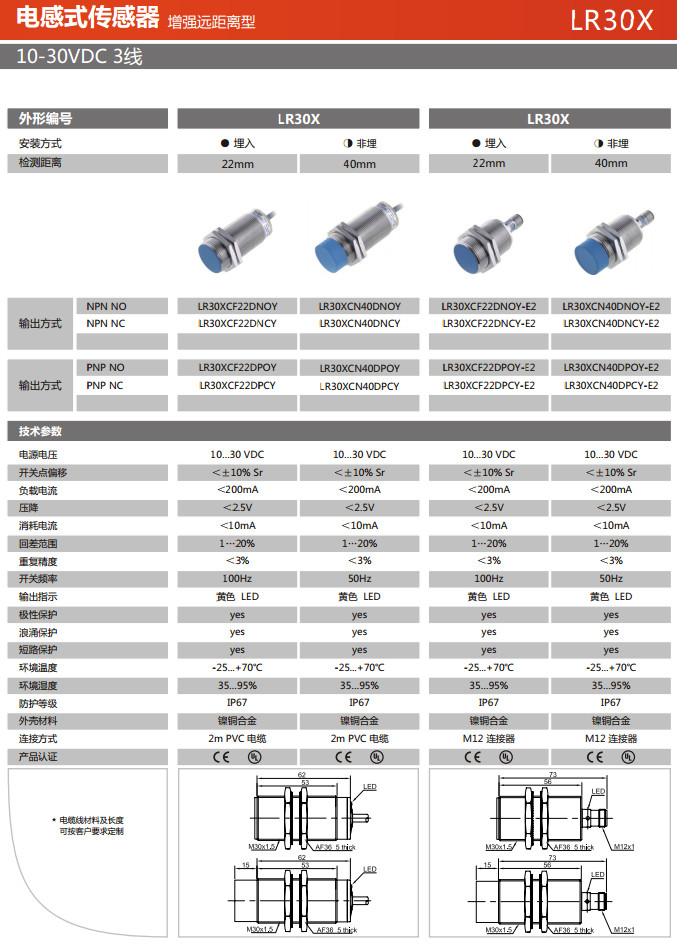LR30XCF22DNOY,LR30XCF22DNCY,LR30XCN40DNOY,LR30XCN40DNCY,LR30XCF22DPOY-E2,電感式傳感器