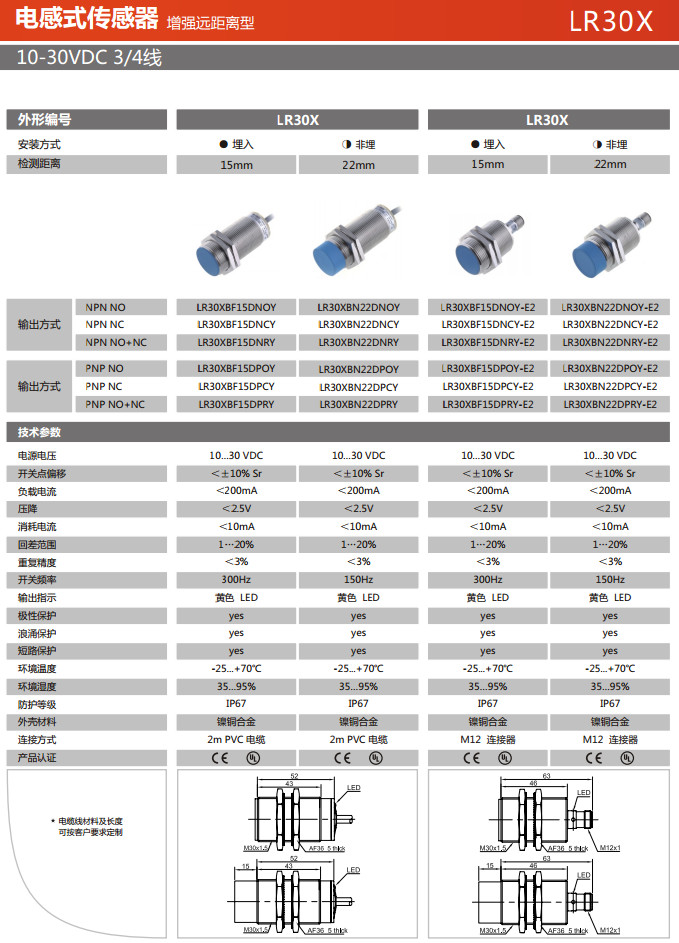 LR30XBF15DNOY,LR30XBF15DNCY,LR30XBF15DNRY,LR30XBN22DNOY,LR30XBN22DNCY,LR30XBN22DNRY,電感式傳感器