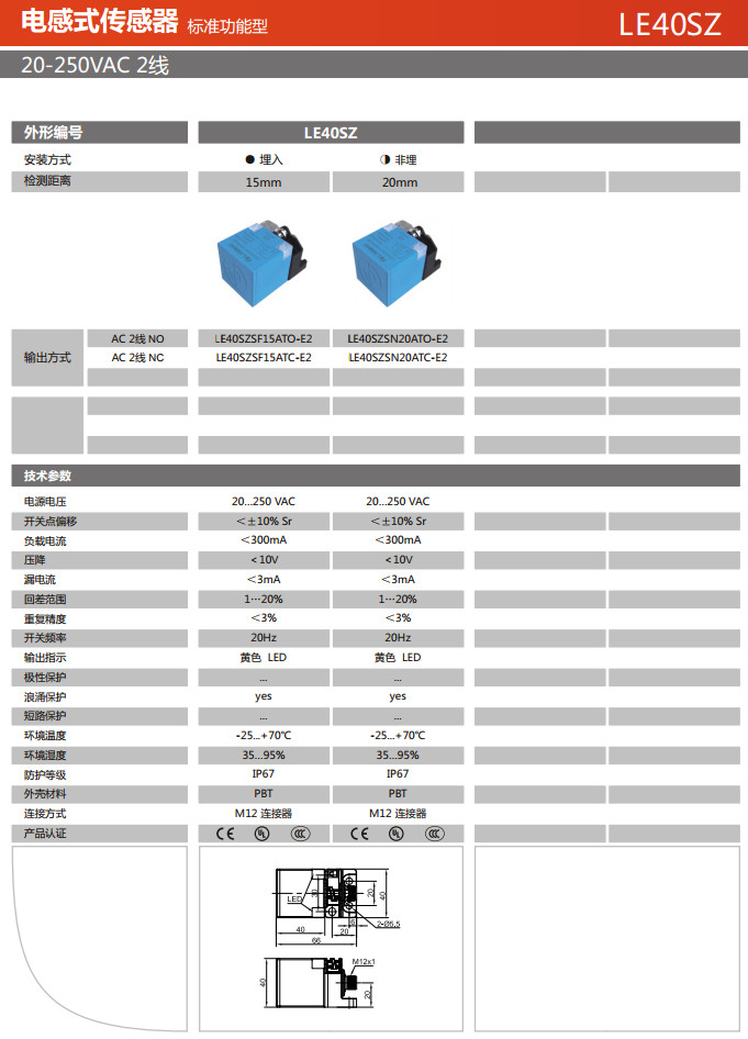 詳細信息 LE40SZSF15ATO-E2,LE40SZSF15ATC-E2,LE40SZSN20ATO-E2,LE40SZSN20ATC-E2,電感式傳感器