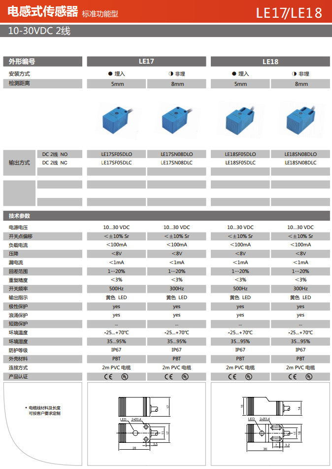 LE17SF05DLO,LE17SF05DLC,LE17SN08DLO,LE17SN08DLC,LE18SF05DLO,LE18SF05DLC,LE18SN08DLO,LE18SN08DLC,電感式傳