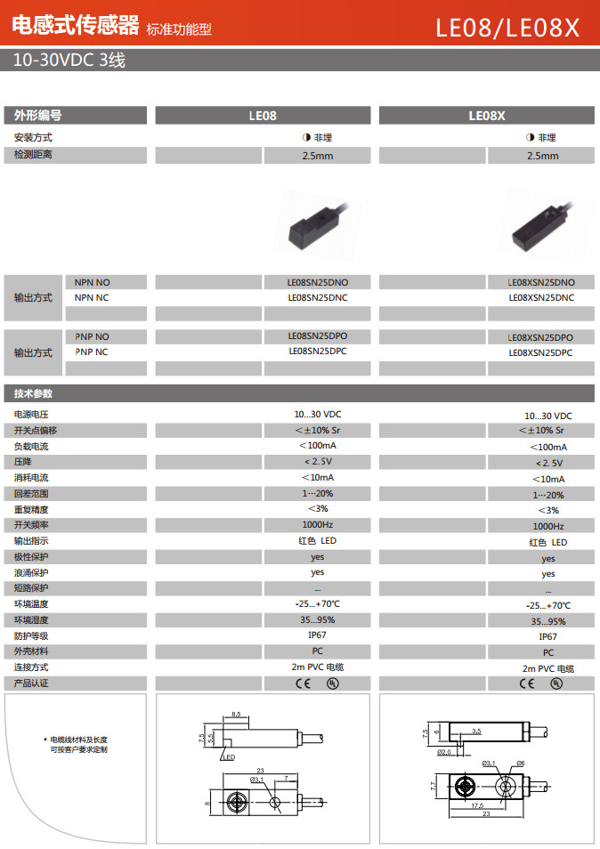 詳細(xì)信息 LE08SN25DNO,LE08SN25DNC,LE08XSN25DNO,LE08XSN25DNC,LE08SN25DPO,LE08SN25DPC,LE08XSN25DPO,LE08XSN25DPC,電感式傳感器