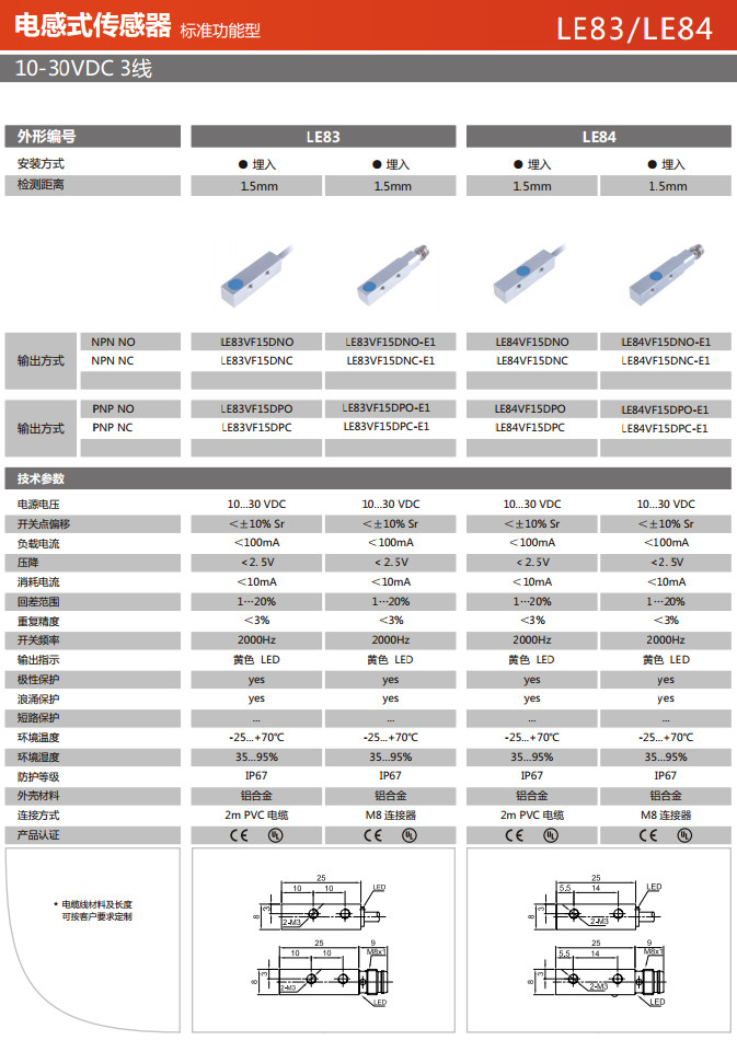LE83VF15DNO,LE83VF15DNC,LE83VF15DNO-E1,LE83VF15DNC-E1,LE84VF15DNO,LE84VF15DNC,電感式傳感器
