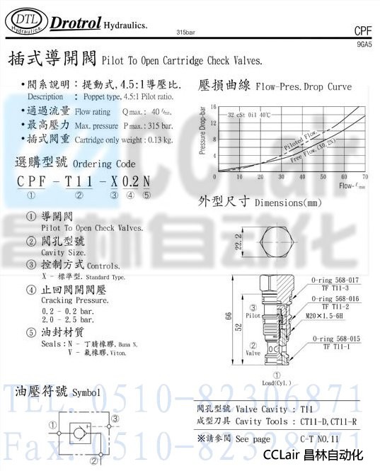 CPF-T11-X0.2N,CPF-T11-X2.0N,磐龍插式導開閥