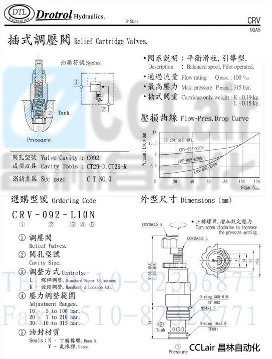 CRV-092-L10N,CRV-092-L10V,CRV-092-L20N, CRV-093-L10N,CRV-063-L10N,磐龍插式調(diào)壓閥,