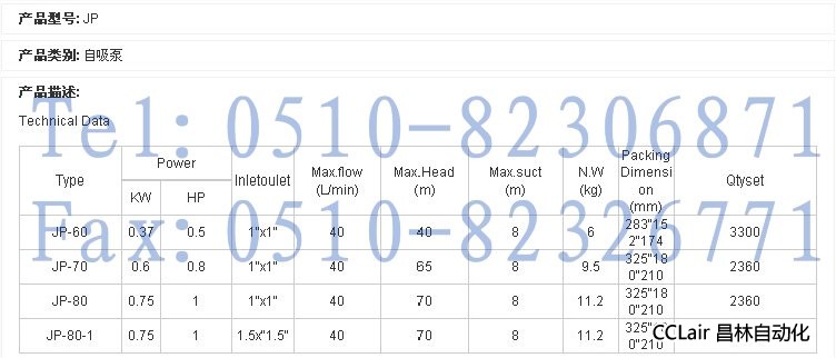 詳細信息 JP-60,JP-70,JP-80,JP-80-1,離心泵