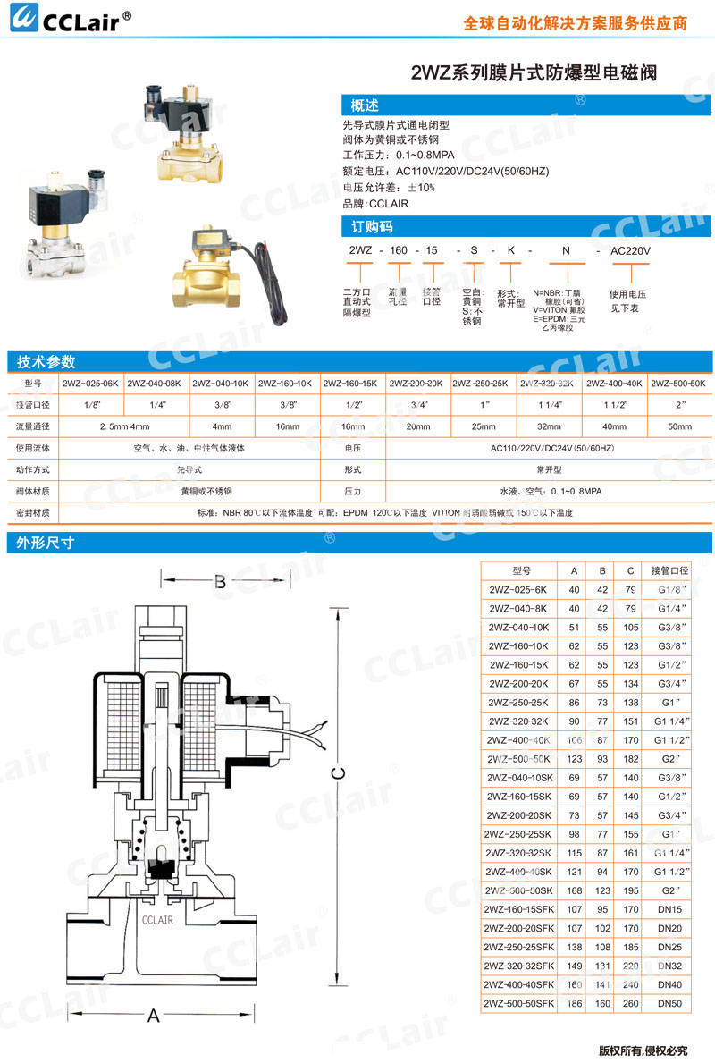 2WZ025-06,2WZ040-08,ZWZ160-10,ZWZ250-25,2WZ320-32,2WZ400-40S,2WZ500-50SF,膜片式常開型電磁閥