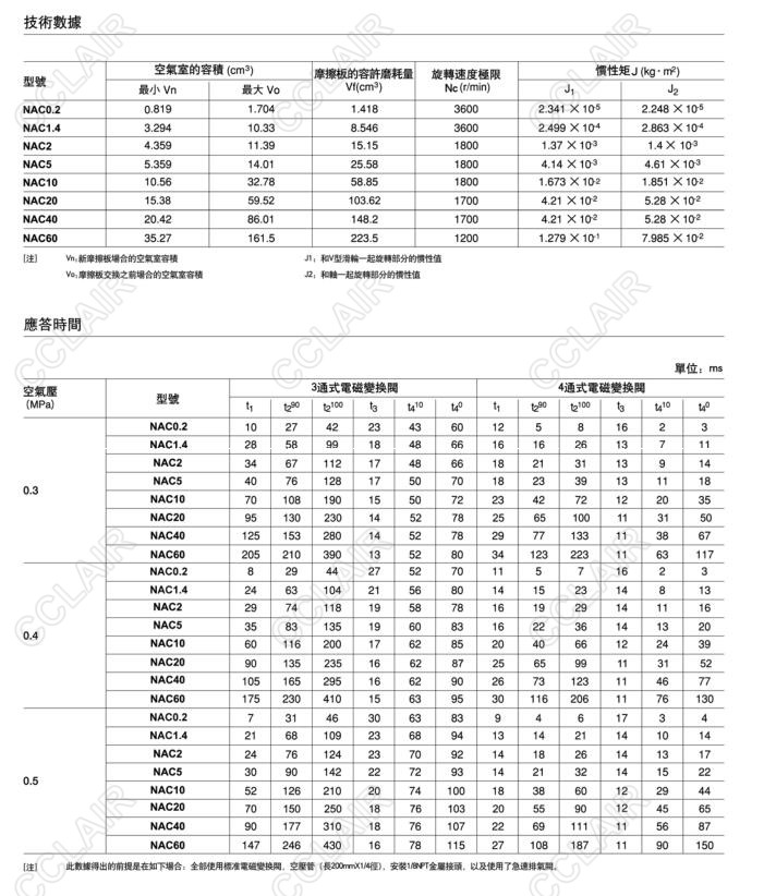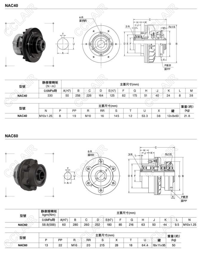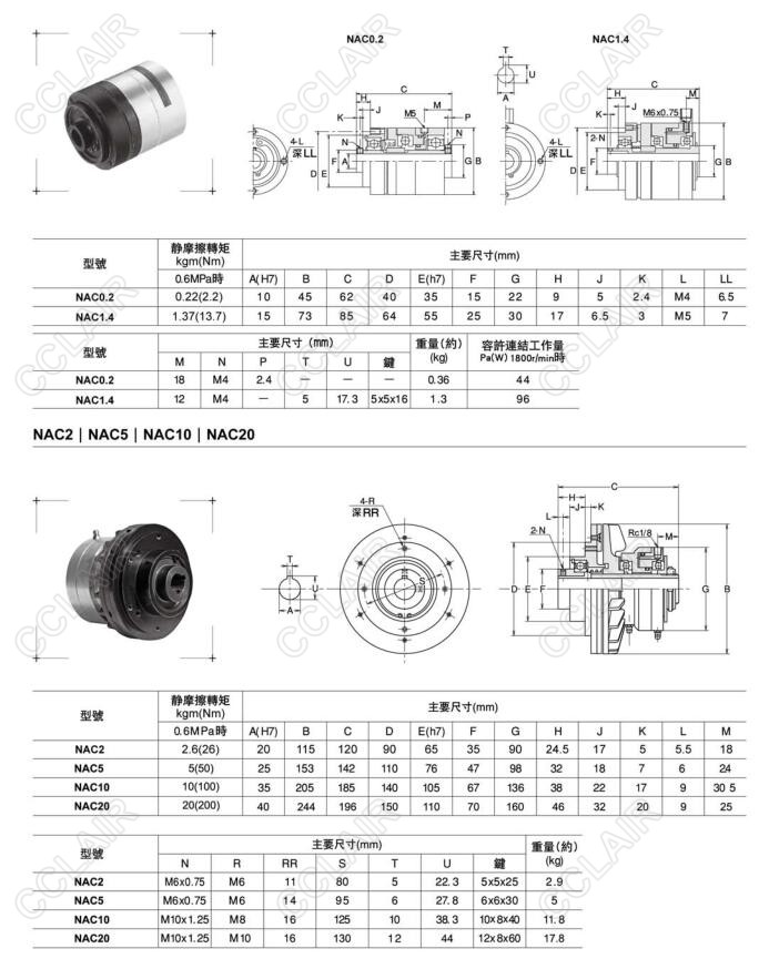 NAC0.2,NAC1.4,NAC2,NAC5,NAC10,NAC20,NAC40,NAC60,空壓通軸式離合器