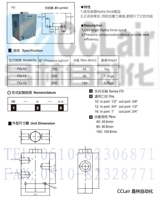 詳細(xì)信息 FD-10,F(xiàn)D-12,F(xiàn)D-16,分流閥