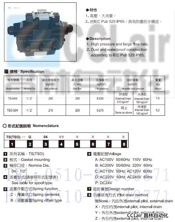 詳細(xì)信息 TS-G04-2C,TS-G04-3C,TS-G04-4C,TS-G04-5C,TS-G04-6C,電磁引導(dǎo)切換閥
