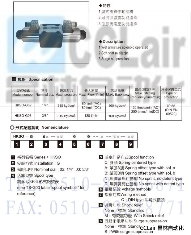 HKSO-G02,HKSO-G03,電磁作動方向控制閥