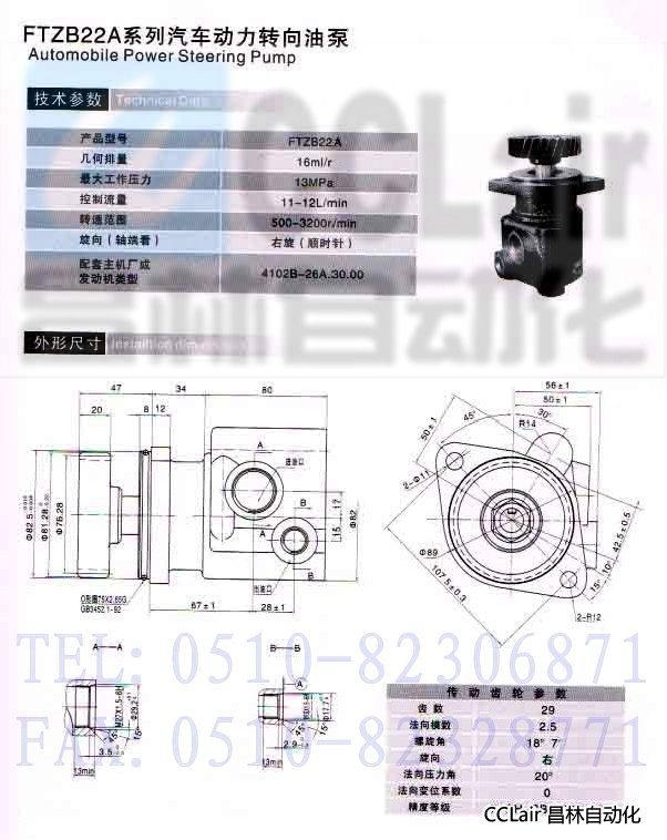 詳細(xì)信息 FTZB22A,汽車動(dòng)力轉(zhuǎn)向油泵