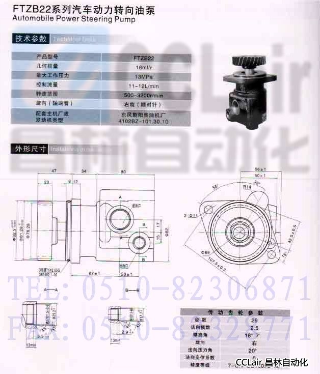 詳細(xì)信息 FTZB22,汽車動力轉(zhuǎn)向油泵