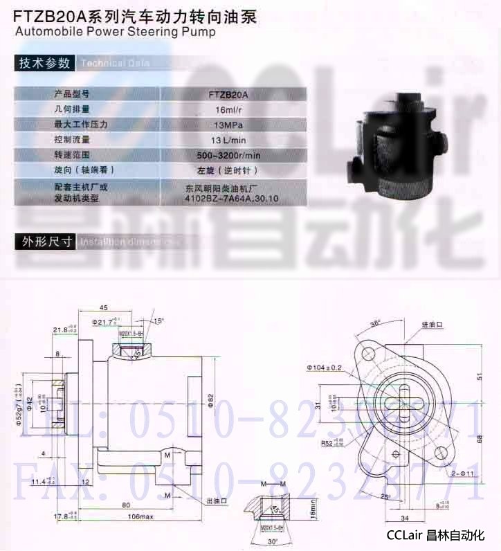 詳細信息 FTZB20A,汽車動力轉(zhuǎn)向油泵