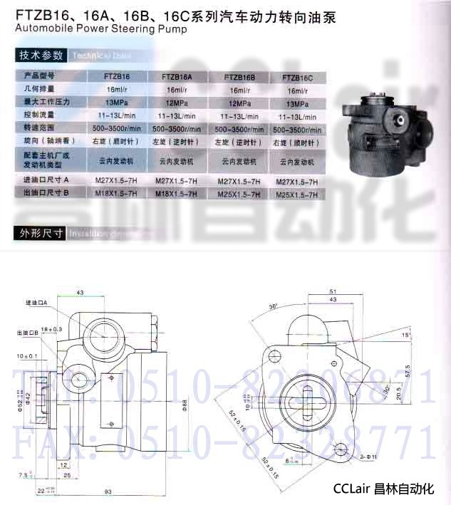 詳細(xì)信息 FTZB16,FTZB16A,FTZB16B,FTZB16C,汽車(chē)動(dòng)力轉(zhuǎn)向油泵