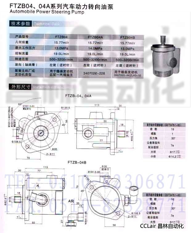 FTZB04,FTZB04A,FTZB04B,汽車動力轉(zhuǎn)向油泵