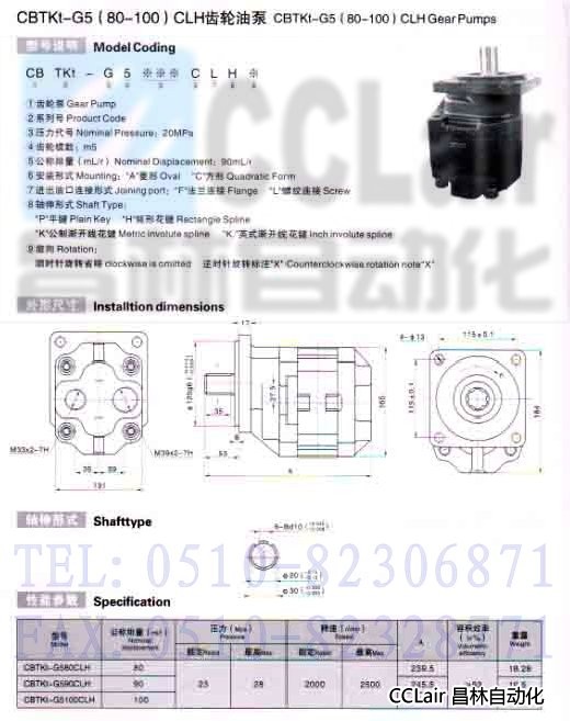 詳細(xì)信息 CBTKt-G580CLH,CBTKt-G590CLH,CBTKt-G5100CLH,齒輪油泵