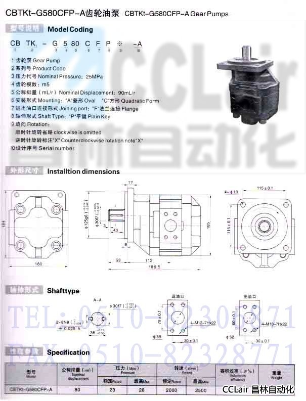 詳細(xì)信息 CBTKt-G580CFP-A,齒輪油泵
